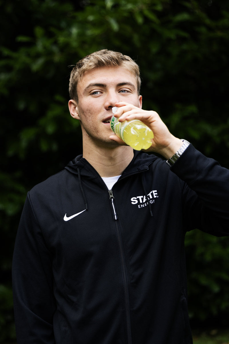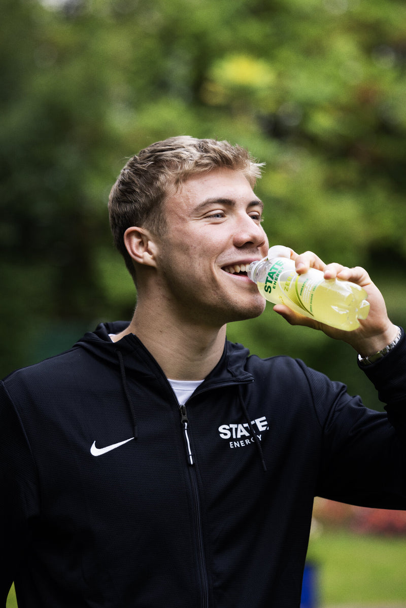 Som ambassadør for STATE repræsenterer han den nye bølge: power, drive, energi og viljen til at gå hele vejen. Han træner ikke bare for at blive god – han træner for at blive bedre end i går og så god som overhovedet muligt. Og han stiller samme krav til det, han indtager. Det er derfor, at Rasmus vælger STATE. Rasmus havde allerede selv drukket STATE i årevis inden han rakte ud til os for at høre om vi kunne supportere med den gode energi. I dag er Højlund medejer af STATE sammen med Christian Eriksen og Caroline Wozniacki. Resten er historie.